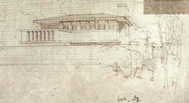 This is Frank Lloyd Wright’s rendering of a design for an addition to the Heath House garage.