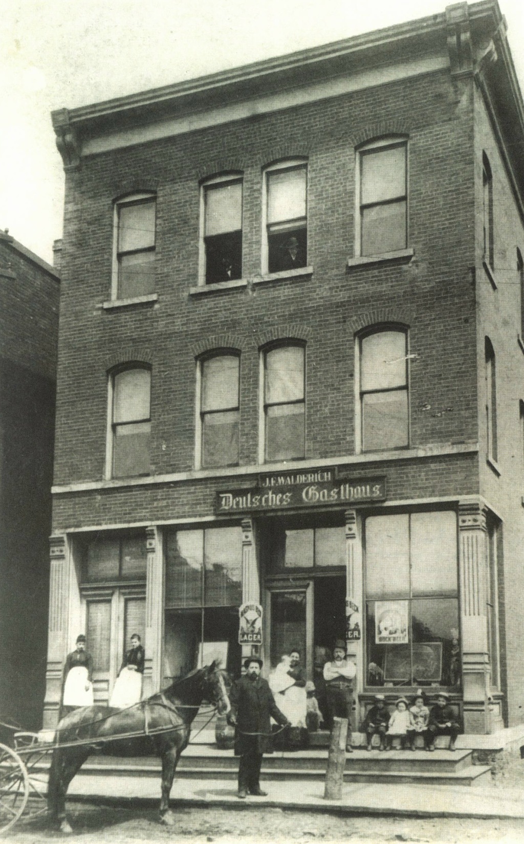 From 1886 to 1896, Walterich operated Deutsches Gasthaus (German Guest House) at 115 Chicago Street. The family lived on the third floor while the second was used for boarders – there was space for 40 – and the first for the tavern and dining room.