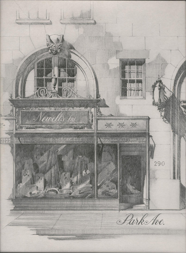 This ca. 1924 sketch of Newell Ltd. shows the street address at 290 Park Avenue, about a two-minute walk from St. Patrick’s Cathedral in New York City. Newell had many stores in high-end retail districts all over the country.